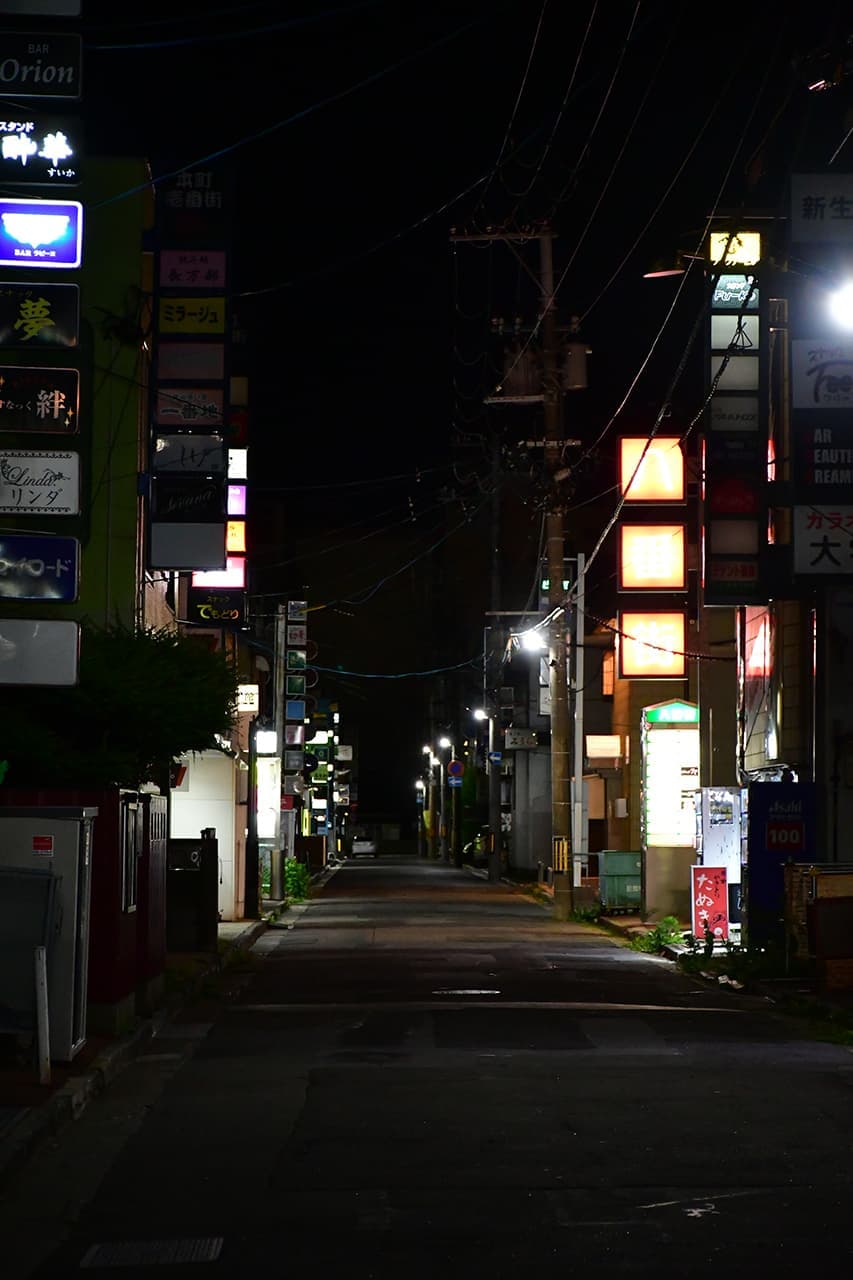 酔客もタクシーもいない飲み屋街。この光景が今年で最後であるように。この後、警察から職務質問を受けました。