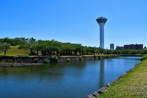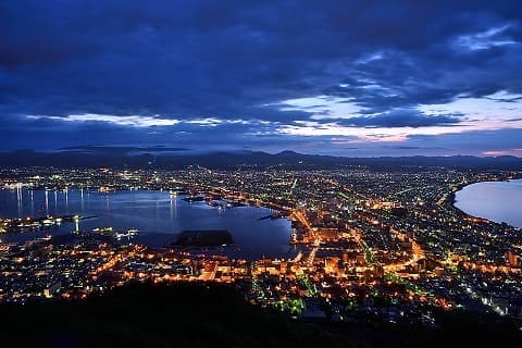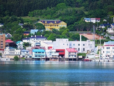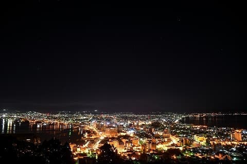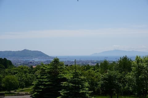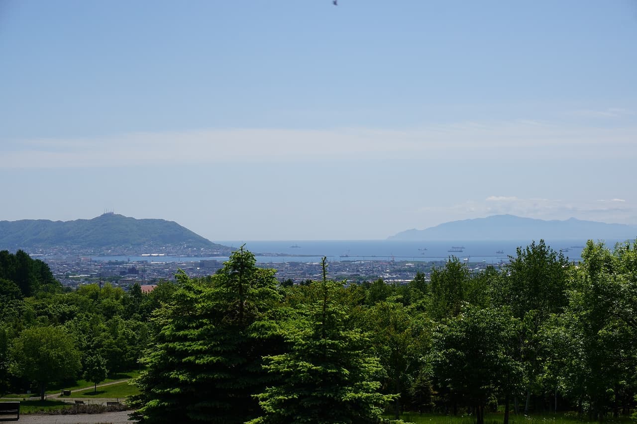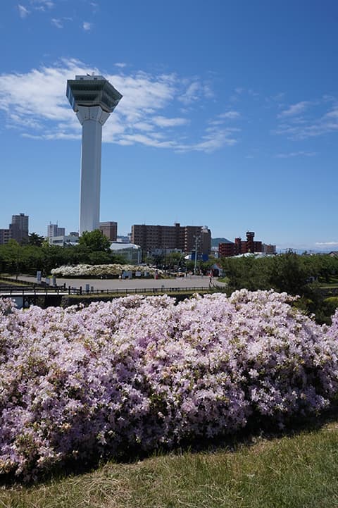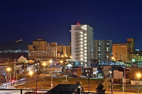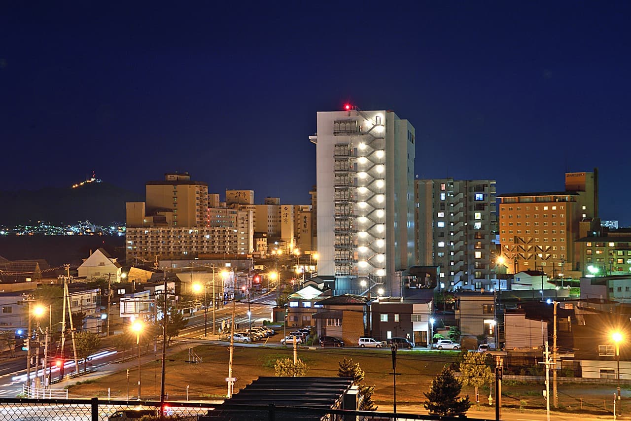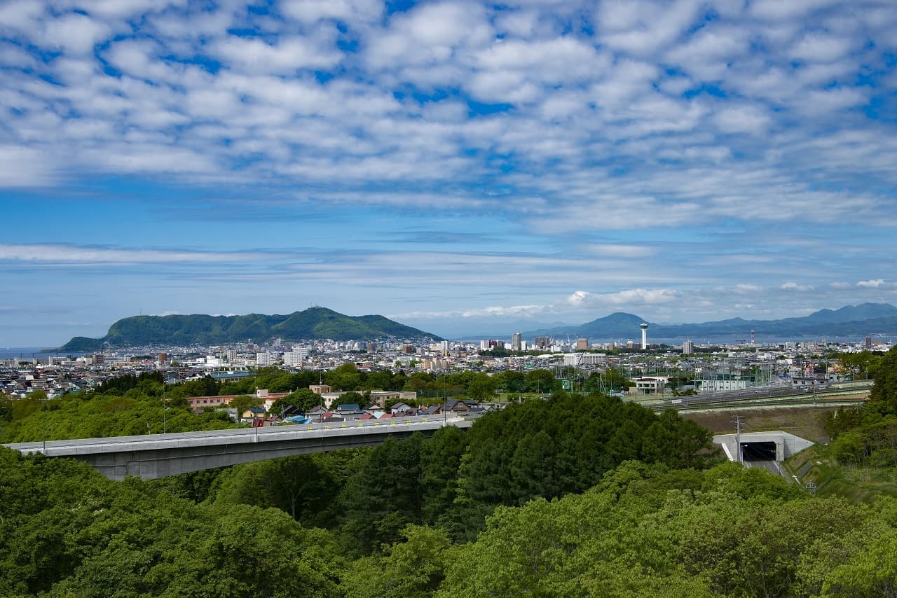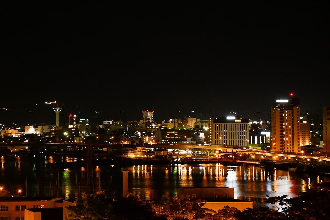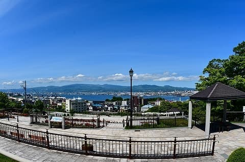 根崎公園から湯の川温泉方向を撮影しました。一日も早く新型コロナウイルス感染症が収束し、たくさんの観光客が戻って来ますように…。