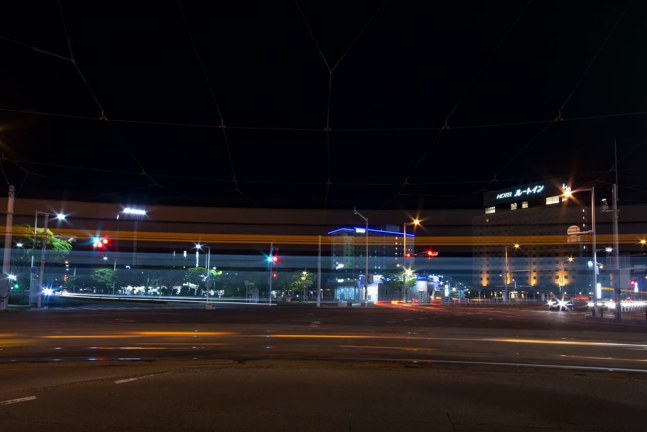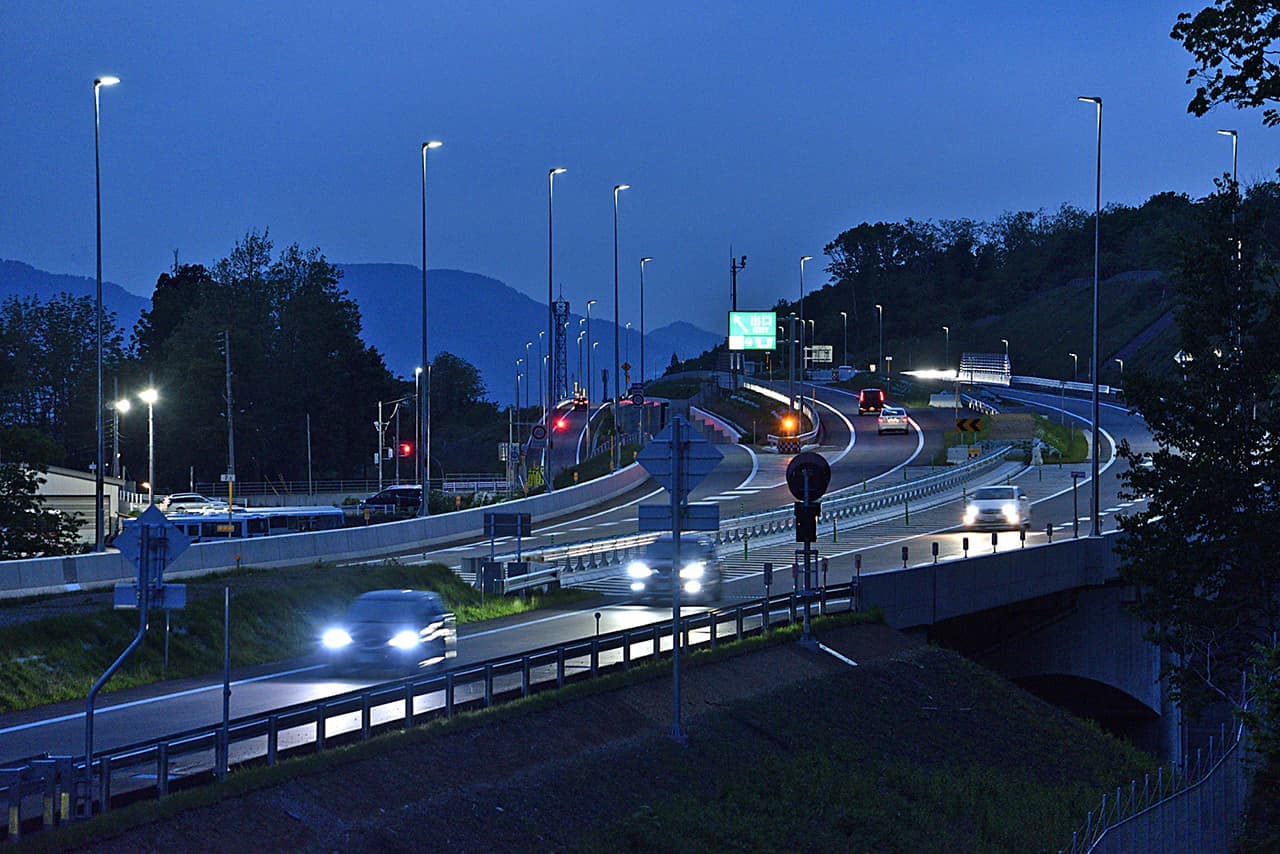 令和3年3月に供用が開始された新外環状道路の日吉IC近くで撮影しました。真新しい道路が街路灯に照らされ、美しく浮き上がって見えました。