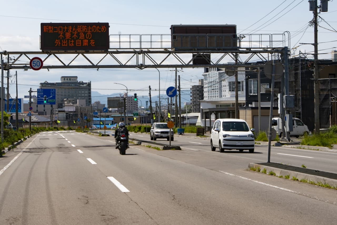 夕方は曇天に。緊急事態宣言下なこともあり、車通りも少なかったです。