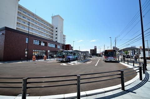 令和3年4月から供用が開始されたばかりの美原バス乗降場です。うまい具合にバスが並んでくれました。