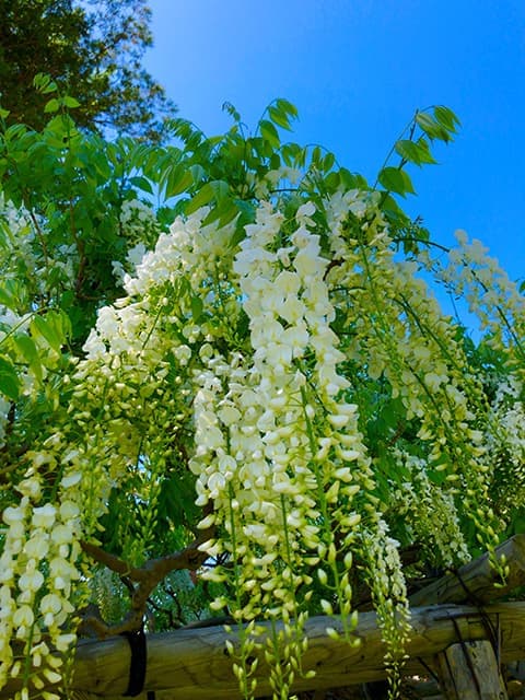 奉行所前の藤棚は間もなく見ごろとなりそうでした